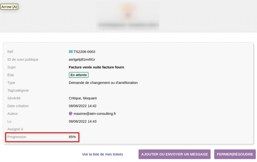 - Possibilité d’afficher la progression d’un ticket dans l’interface publique